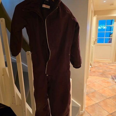 Pent og lite brukt i en sesong. God og varm kvalitetsdress. Farge deep purple. Så vidt synlig litt lysere partier på knær og rumpe ellers i god stand! Har strikk med mulighet å justere livvidde, innvendig lomme og to utvendige lommer. Avtakbar hette. Nypris var ca 1900 kr.
