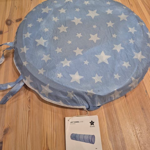 Krabbetunnel / leketunnel fra Kids Concept selges. Den er lilla med stjerner, og er 180 cm lang.