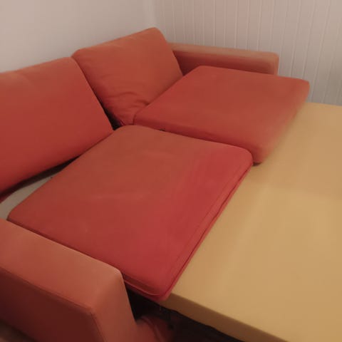 Senga er nesten ikke brukt, overmadrassen er helt ny. Senga har god oppbevaring under hele. Veldig fin og praktisk!
