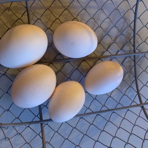 Selger 5 flotte høner samlet. De er alle klekket i sommer og nettopp begynt å legge egg. 2 stk lohmann (2. generasjon) en kobberhalset maran, en cream legbar blanding og en la bresse. Flotte fargerike egg.