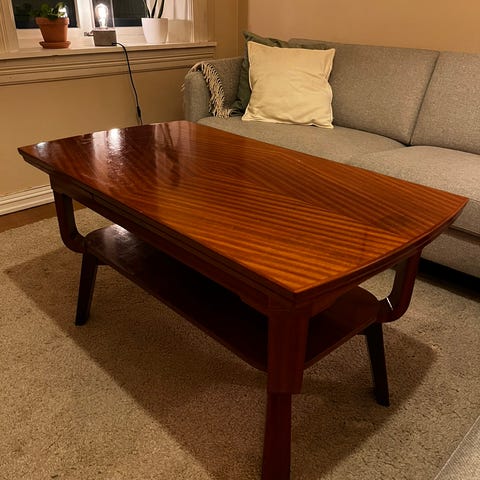 Jeg har sett tilsvarende bord lagt ut for 4000 kr, så dette er et godt kjøp for deg som ønsker et ekte kvalitetsbord i mahogney.