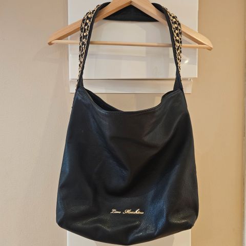 & Other Stories veske laget av semsket skinn i grønn farge. Vesken har en skulderrem og lukkes med knapp.