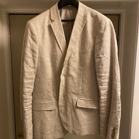 Lys blazer fra H&M i lin-/bomullsblanding. Lett stoff, godt egnet for vår og sommer. Klassisk snitt.