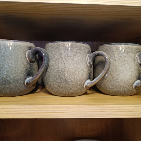 En sjette kopp har et lite skår i kanten. Denne kan følge med gratis om ønskelig.