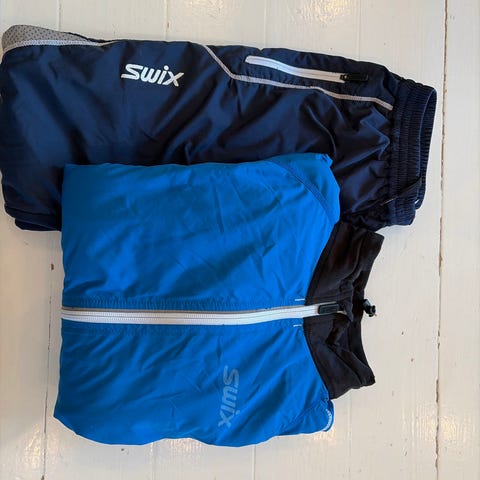 Swix Junior jakke og bukse til langrenn/trening/tur i størrelse 8-10 år. Dressen består av jakke og bukse i blå og svart farge. Myk dress med tynn fleece på innsiden av jakken. Godt brukt, men helt fin tilstand og klar for nye skiturer.