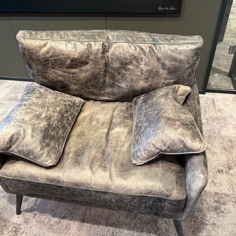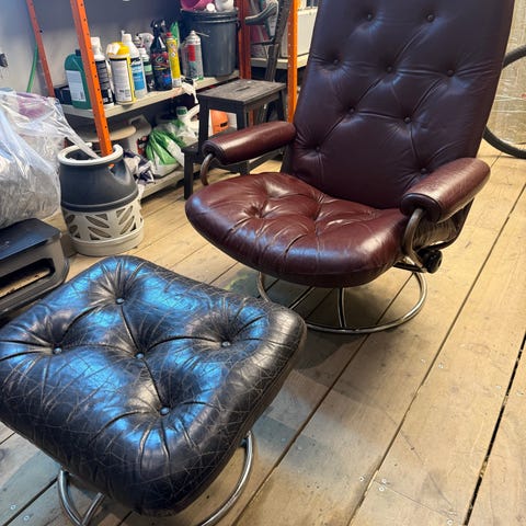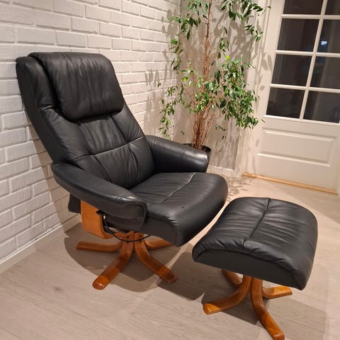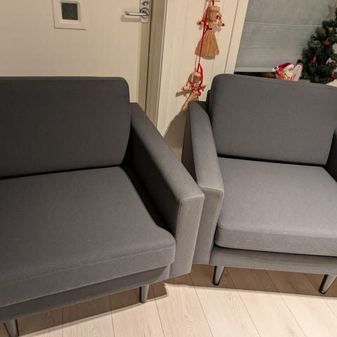 To grå lenestoler med fotskammel selges. Brukt, men fortsatt mykje nytte igjen.