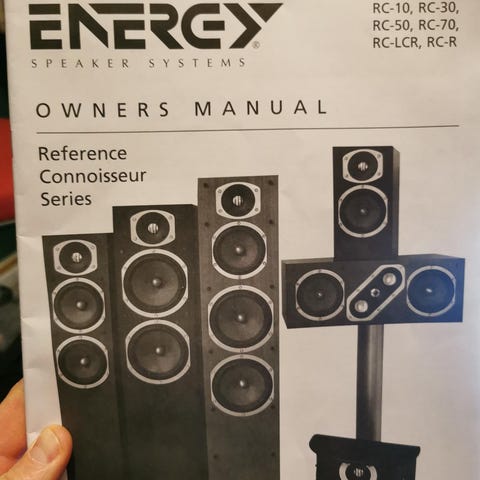 Pent og strøkent eksemplar av Energy RC-50. Hatt de sammen med en Harman Kardon forsterker og det spiller veldig pent. Bra trøkk er det også.