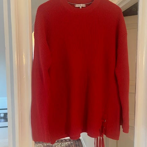 Tommy Hilfiger genser i grønn farge, størrelse XL for kvinner. Laget av bomullsmateriale.