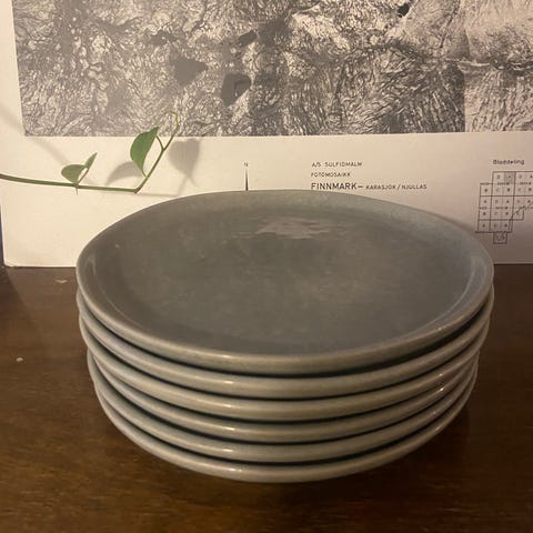 Lagerhaus tallerkener med svart overflate og beige kant. Designet for kjøkkenbruk, laget av keramisk materiale. Passer til daglig bruk.