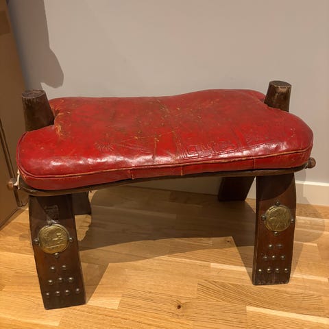 Den ble brukt av gymnaster. Ble festet på bukk/bum på 40-50 tallet, så bærer preg av alderen sin.