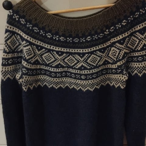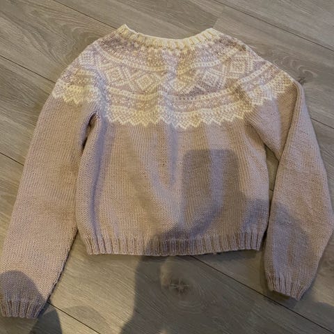 Søt hjemmestrikket Mariusgenser i god ullblanding. Varmt og deilig genser. Pent og lite brukt. Størrelse M