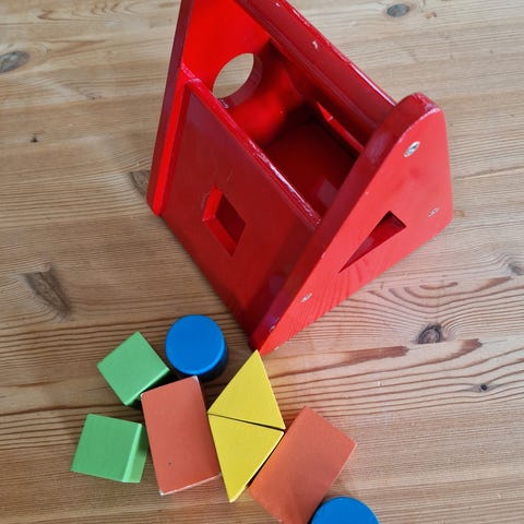 En stor og en liten puttekasse og et hamrebrett selges samlet.