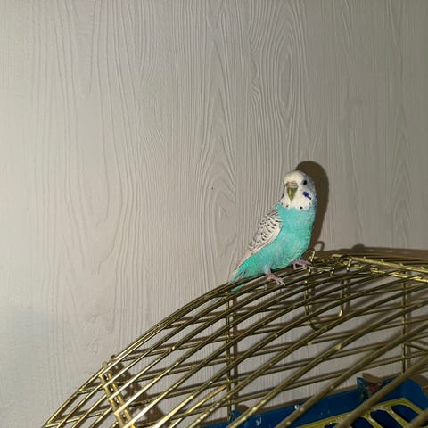 Må omplassere min "Sprout" da fuglene har forverret allergien min. Han er født i November og har ordentlig bra grunnlag for å bli en oppriktig tam fugl - det skjønte jeg med en gang. Han har ikke noe imot kos, men lærer seg fortsatt dette med å tråkke opp på fingeren (kommer meg ikke lengre enn at han ser på meg rart når jeg presser mot magen hans). Han har også en relativt mørk og fin stemme for en undulat, og er en nysjerrig sjel som tør det meste. Personligheten er helt topp, og han har veldig fine farger også. Selges mot at kjøper har et greit oppsett (gjerne send bilde av bur) og andre undulat(er) fra før av.