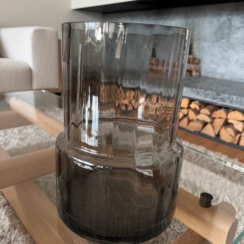 Glass i mørk brun farge.
