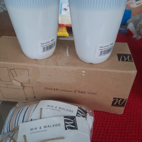 1) Wik & Walsøe «Osean» kopper. 3 nydelige krus i blått og hvitt: Osean Hav, Osean Galakse og Osean Horisont. Design: Linda Svedal Walsøe. Høyde 9 cm. Rommer 20 cl. Tåler oppvaskmaskin og mikrobølgeovn. Fremstår som nye. Selges samlet eller separat. Kr 120 pr stk. SOLGT!