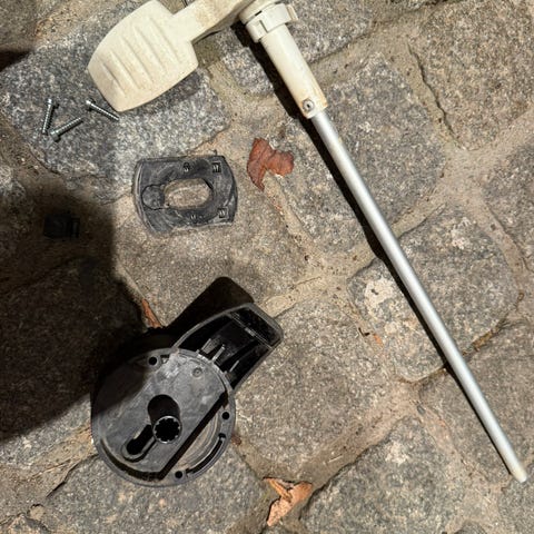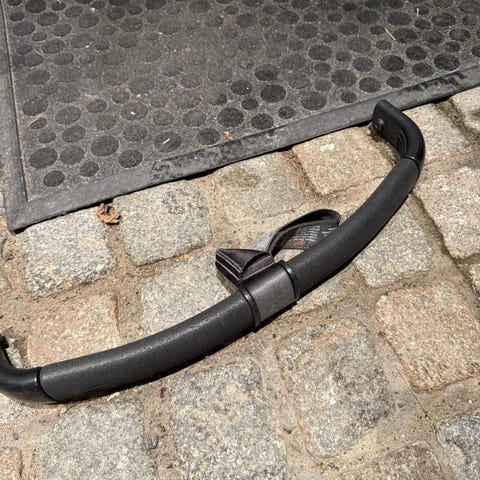 Styre / håndtak til Bugaboo donkey. Ingen feil, men polstringen er senere blitt tatt av grunnet slitasje på polstringen. Må sette på ny polstring - eller bruke den som den er.