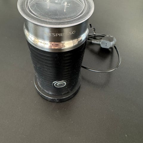 Selger en Nespresso Aeroccino 3 melkeskummer i god stand. Lite brukt og fungerer som den skal. Lager både varm og kald melkeskum – perfekt til cappuccino, latte og annen kaffedrikke. Enkel å bruke og lett å rengjøre.