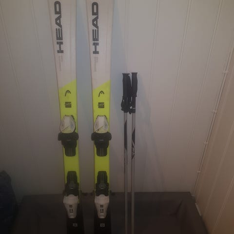 Ski og skistaver selges da det ikke er i bruk lengre.