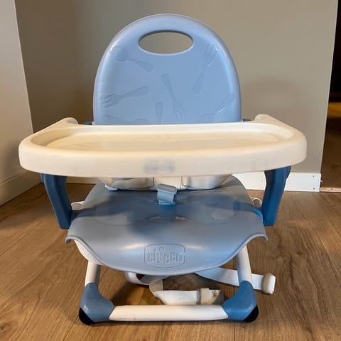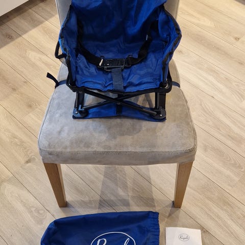 Praktisk reisestol eller å ha med når man besøker noen. Sett den på en stol og så klips den fast.