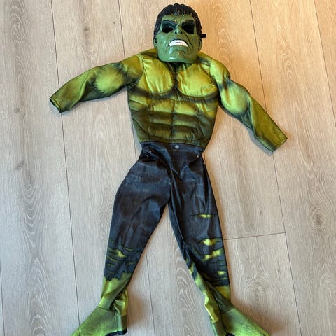 Pent brukt Hulken kostyme med tilhørende maske. Brukt noen få ganger.