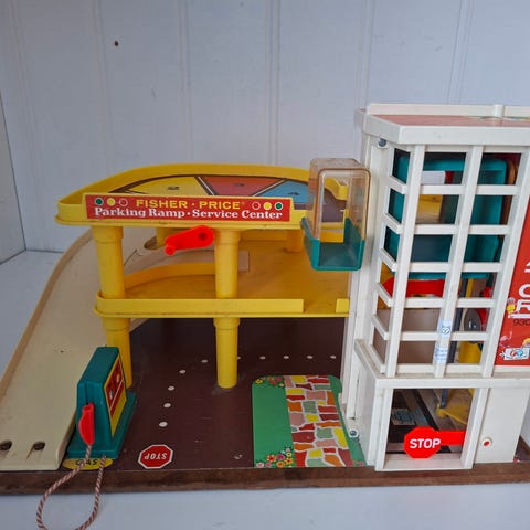 Shell og Continental lekebilbane laget i metall med detaljer som bensinstasjon, parkeringsplasser og veier. Inkluderer en liten lekebil. Fargerik og illustrert med logoer fra Shell og Continental. Det er i god lekt stand med en herlig brukspatina. Trolig tysk opprinnelse fra 1950-tallet.
