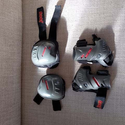 K2 albuebeskyttere for barn med justerbare stropper i fargerik design. Beskytterne har hardt ytre skall og polstret innside for beskyttelse og komfort under aktiviteter som skating eller sykling.