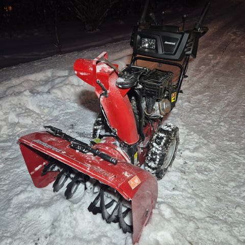 Snøfreseren starter lett og fungerer fint Normal bruksslitasje. Lite brukt, mye freser igjen her.