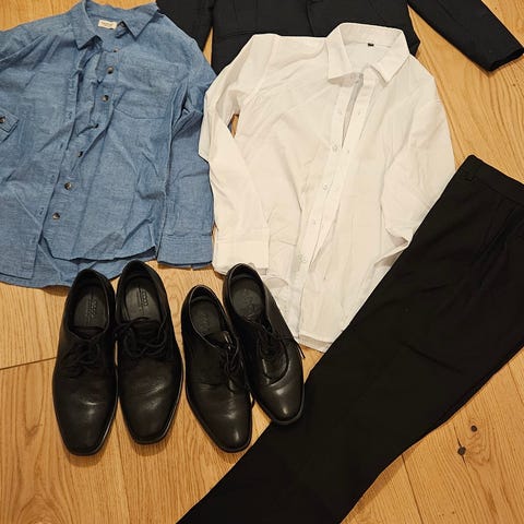 Pris 100 pr genser og 200 for skjorten. Laget av bomull. . Passer for barn i størrelse 170 og er designet for unisex bruk.