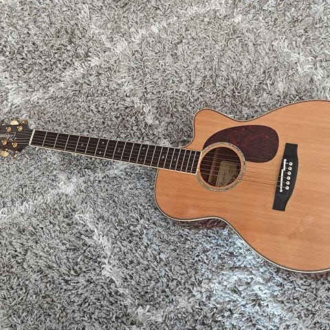 Gitaren er godt brukt og har en del merker på kassen etter levd liv. Godt valg for de som vil ha god lyd, teknisk kvalitet, og som ikke trenger den som stuepynt.
