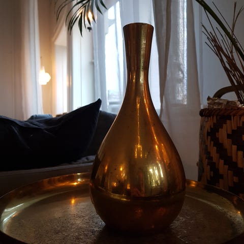 Søt vintage liten vase i messing. Fin patina på overflata. 7 cm høy.