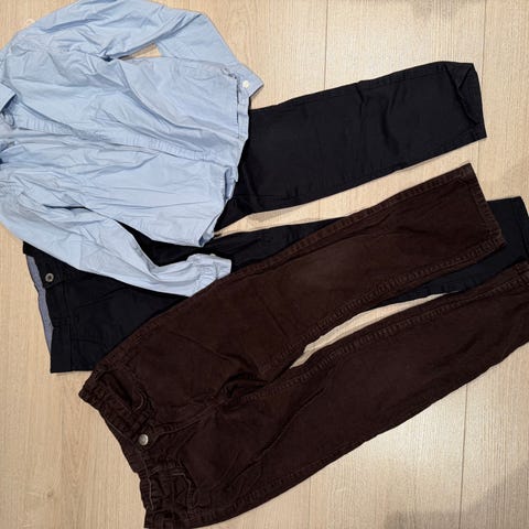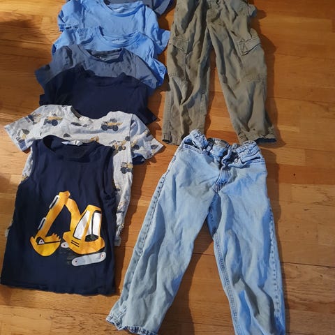 H&M barneklær for gutt i størrelse 122-128 med flerfarget design. Inneholder ulike plagg egnet for barn.
