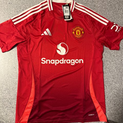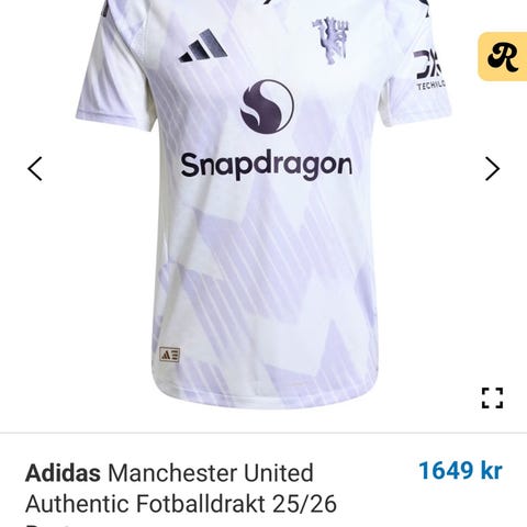 Adidas Manchester United bortedrakt sesong 2021-2022 i størrelse S. Ingen trykk på baksiden. Tilstand 10/10. Har bare vært prøvd på én gang, ellers ikke brukt - så den har ingen merker og ser ut som den kommer rett fra butikken. Synes selv den er skikkelig fin, men jeg bestilte feil størrelse. Selges til høystbydende fra 500 kr og oppover.