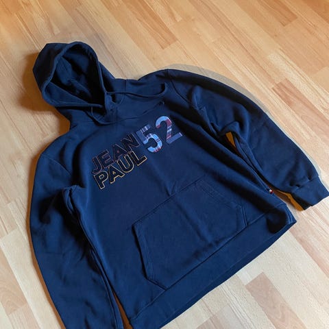 Selger en pen brukt hettegenser i burgunder farge i str. M kan brukes av gutter i str.170.