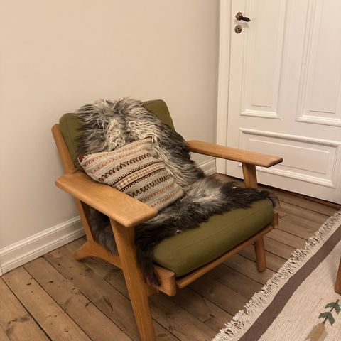 Kjempefin Scirocco vintage safaristol av Arne Norell og Aneby Møbler fra 1960-tallet. Stolen er en sjelden variant i greige/beige. Den er av lys ask og naturlær. Behagelig å sitte i.