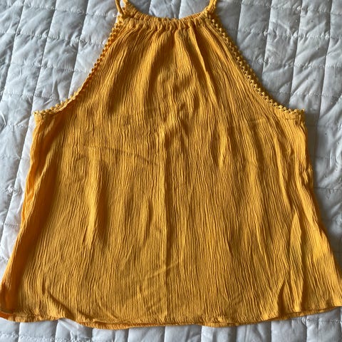 Singletten har spaghettistropper og blondedetaljer på overdelen.