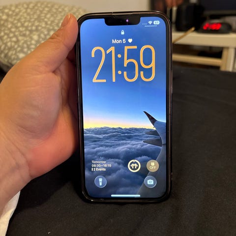 Pent brukt iPhone 14 i lilla. Telefonen fungerer som den skal og har vært brukt med deksel og skjermbeskytter.