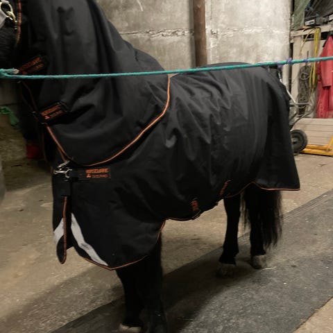 Amigodekken med hals 250g. Str 140. Helt og pent. Blir ikke vasket. Brukt av hest som ikke ruller seg ute.