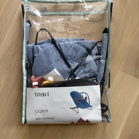 Gorm vippestol. Kun brukt et par ganger på reise. Veldig praktisk å ta med da den flatpakkes i liten veske. 499,- ny. Ønsker 200,- for den. Merk: den er lilla, ikke sort