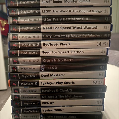 Pakke med flere PlayStation 2-spill og PC-spill inkludert titler som Pro Evolution Soccer 6, The Sims, RollerCoaster Tycoon 2, og Need for Speed: Underground. Spillene er i standard PlayStation 2-format og dekker ulike sjangre som sport, simulering og racing.