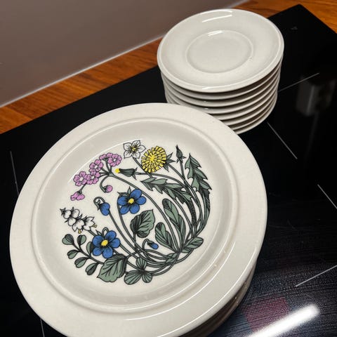 vakker retro Figgjo Norway koppetallerken/asjett med dekor av Turi Gramstad Oliver.