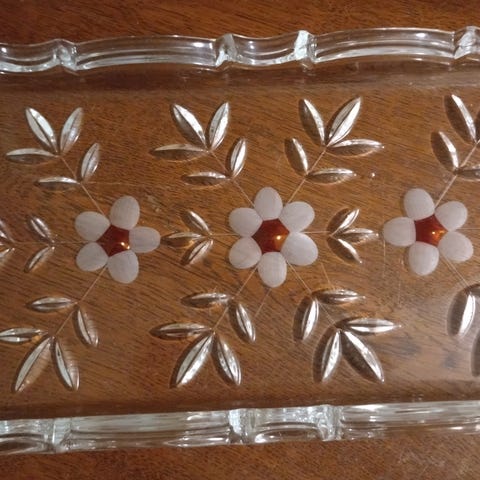 Glassfat, rektangulært 34x15 cm. Passer fint til f.eks. karamellpudding, kabaret og diverse.