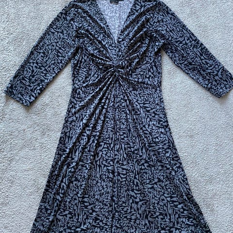 Sort kjole med stilige detaljer. Glidelås på ryggen. Str. L. Kan sendes.