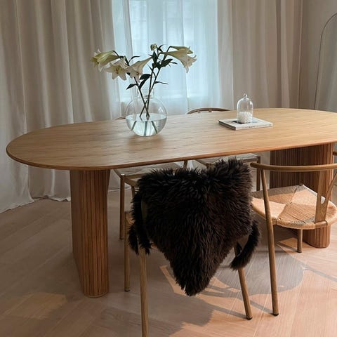 Bordet er i god stand, men har små bruksmerker og noen riper, som er normalt ved bruk. Står stødig og er solid.