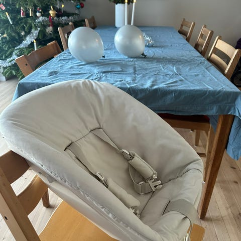 Passer til tripp trapp stol. Er enkel å klikke på plass. Fin for å ha baby med på måltid eller bare se litt på når man lager mat etc.
