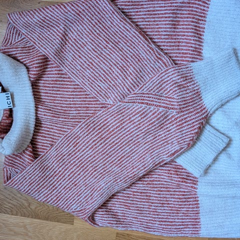 ICHI genser i ull for dame, størrelse S. Genseren har flerfarget mønster og er laget av ullmateriale.