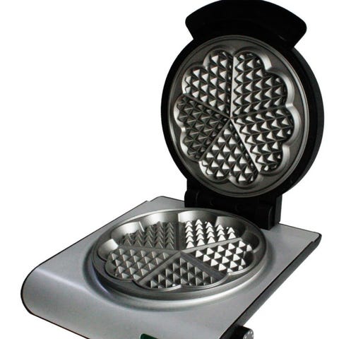 Cuisine Vaffeljern med non-stick belegg, effekt på 1000 watt, og hvit farge. Egnet for å lage vafler med hjerteformede mønstre.