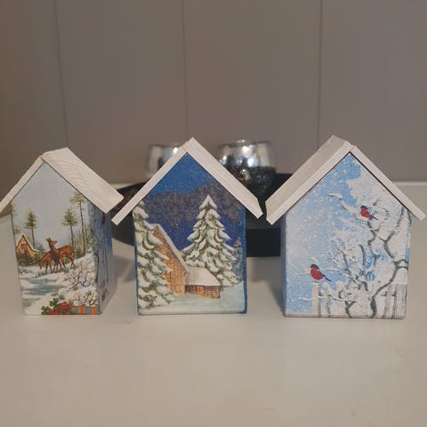 Et vintage julehus til å ha te lys i selges kr 50