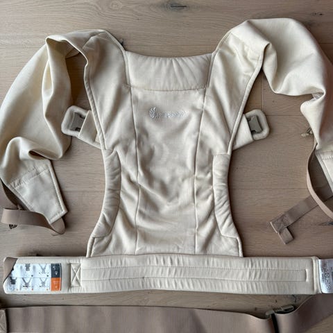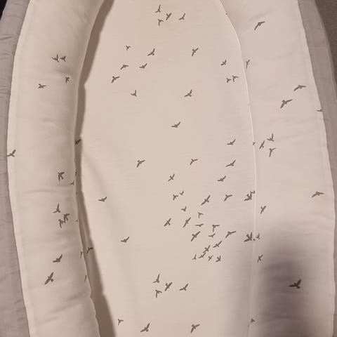 Myk og enkel bæresele for nyfødt, laget i pustende materiale. Kjøpt ny i juli 2025. Pent brukt av 1 barn, kun brukt et par ganger. Ingen bruksmerker. Nypris 1000kr. Kommer fra røykfritt hjem, kun vasket i parfymefritt vaskemiddel.