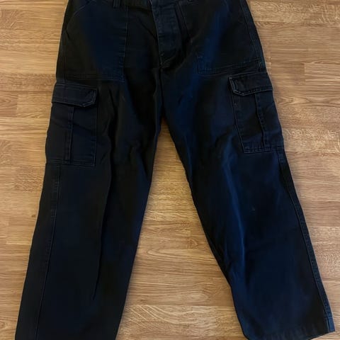 Ny og ubrukt knebukse/ankelbukse i 100% bomull selges billig. Tøff vasket look med kule lommer bak.