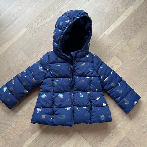 Benetton barn jakke i størrelse 92, designet for jente. Jakken er beige og laget av akryl materiale. Den har et varmt og mykt fôr som gir ekstra isolasjon.